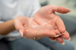 Good news: cleaning your aligners is easy. In fact, it will only take you a minute, and you can use the same products you already have! The first step is getting into the habit of rinsing your trays with clean, cool water when you take them out (this will remove saliva, food particles, and other debris from the surface). The second step is using a damp, soft-bristled toothbrush to clean the aligners after each meal. If needed, you can also use a clear, mild dishwashing liquid, but don’t use toothpaste or bleach.